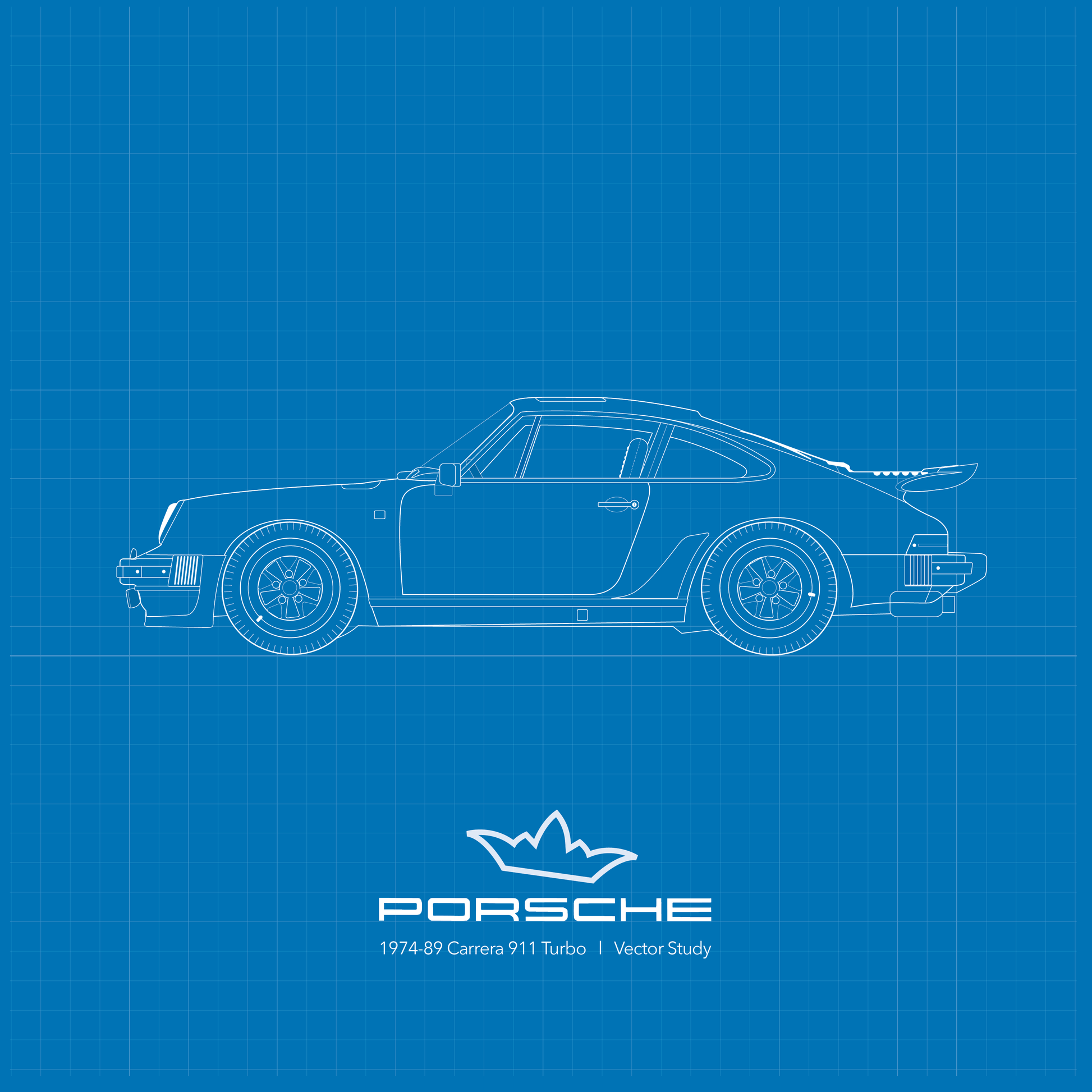 Art Print 1974-89 Porsche 911 l Blueprint (Blue)